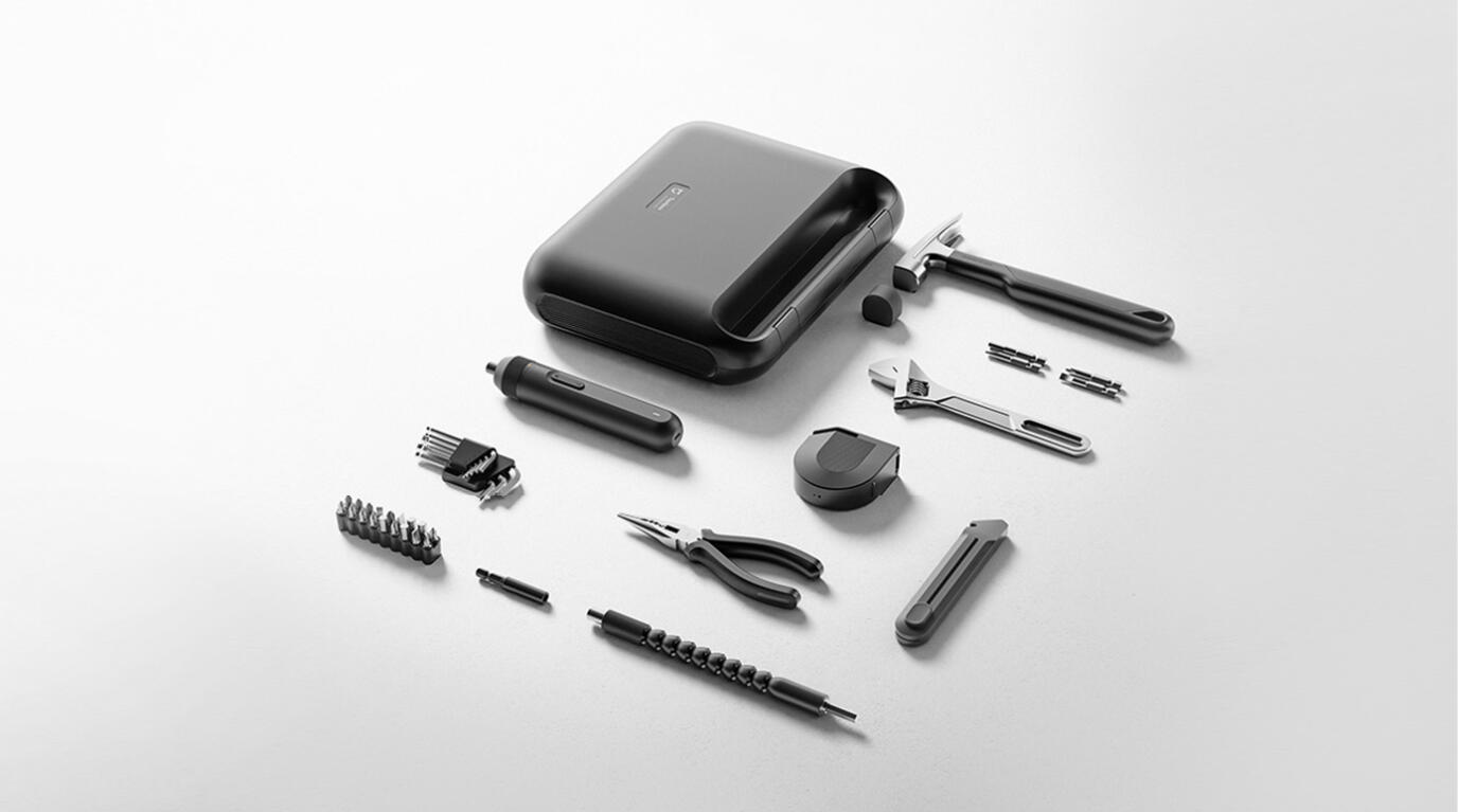 آچار قابل تنظیم-انبردست چندکاره-چکش (پنجهدار)-چاقوی کاربردی-متر اندازهگیری (3 متر)-پیچگوشتی (بیتست)شامل چند بیت کوتاه و بلند-کلید آلن / آلنکیش